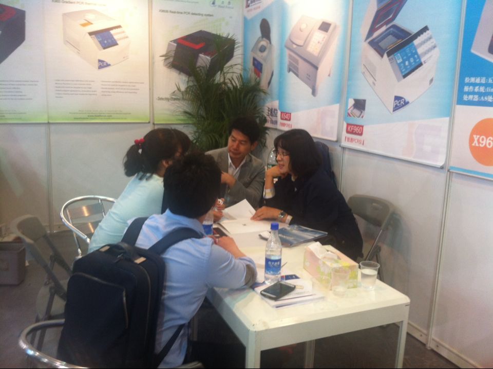 参观我们展位的观众络绎不绝,看到我们展台上的PCR基因扩增仪和荧光定量PCR检测系统,国内外观众对我们的产品评价很高,都说我们的产品外观新颖独特、种类丰富、性能参数很有优势、拥有CE证书和SFDA供应领域不受限制,很看好我们的产品,其中两位位来自欧洲兄弟观众看好我们的产品,注意到我们的产品有CE认证证书,表示有合作意向;另外一位来自同济大学的老教授,从事转基因食品分析领域的,看到的我们的荧光定量PCR检测系统很满意,他本人表示很支持看好国内生产的荧光定量PCR系统,直接给我们签了订购意向,还有其他一些客户这里就不一一列举,非常感谢各位观众的对晶格产品的一致好评,在接下来的产品中我们仍然会秉着晶格目标“革故鼎新,精益求精”为广大新老客户提供一流的PCR基因扩増仪,满足广大客户的需求。